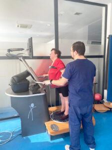 Se trata de un sistema que se basa en la detección del desplazamiento del centro de presión, similar al centro de gravedad (COG), en diferentes situaciones de conflicto sensorial (visual-somatosensorial) o estimulación vestibular, este nos proporciona información sobre la capacidad de un paciente para realizar de manera segura y eficiente actividades de equilibrio y movimientos esenciales para la vida diaria, además cuenta con juegos integrados para una mayor adhesión al tratamiento tanto en adultos como en niños..